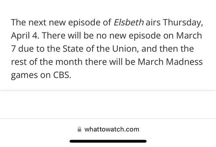 Elsbeth已经播出了第一季第一集。第二集将在4月4日播出——整个3月没有更新。因为3月是CBS的传统赛事档期March Madness(疯狂3月),这是美国大学体育总会(NCAA)的一级联盟Division I(一共3级,1是最高级别,对学校要求很高)的男子篮球联赛。