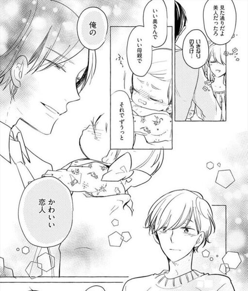 这话更新后鸽了五年,你知道我这五年——(以下略)另外有个细节值得一提,攻受两人在谈到自己心中对彼此的定位时,都认为对方是“好妻子/丈夫,好母亲/父亲,但最重要的是,他是可爱/帅气的恋人”,不约而同地把恋人排在了配偶或家长这个定位之前。仅仅几格描写就足以把我大脑中“婚后爱情就会渐渐转化成亲情”的PUA余毒击得粉碎, 婚姻的初心就应该是始终怀有恋心。原本就是毫无血缘互不认识的两人因爱情走到一起,连爱情都消退后还能剩下什么。大概只能靠抚养孩子这一共同利益来勉强捆绑吧。所谓的“爱情转化成亲情”不过是爱情消退移情别恋的遮羞布罢了,它能成为一代又一代人口中用于维系家庭的理由,足以说明婚姻有多恐怖(。)但或许恐怖的不是婚姻而是人性,在这里不想讨论这么艰深的话题,只想说正因如此我们才会憧憬纸片中的狗粮。