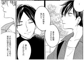 恋爱中能否尊敬对方是很重要的事——庞姆老师如是说然后是命运伴侣。这一点不可否认作者搭了设定的便车,ひろさん和真生是因魂番而相遇。按原作的说法是“四目相对之前,就已经知道他在那里了,他就是我的命运”,这种剧情固然浪漫却也过于偷懒,或许作者最初只是打算出单卷的吧。随着篇幅拉长也在剧情中为命运这个定义打了补丁,在最新的剧情(什么最新,已经是五年前了,你知道我这五年是怎么过的吗)中提到了命运不只是生理上的相合,也有心情上的认可。“之所以能与真生结婚,是因为那孩子相信了我,选择了我,这也是我们命运的一部分”,不得不说这补丁打得漂亮,直球但有效,在经历了四卷的情感积累后能感受到这句话的分量。