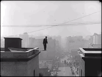在拍摄《三个时代》时,基顿跳跃楼顶失误,摄影师按照基顿“摄影机不能停”的要求记录下这一切。