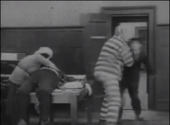 《警察》1922经过不断的摸索,基顿总结出,最好的笑料一定是自然的、真实的和可信可行的(natural gag)。