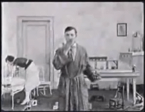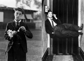 在默片时代,基顿也和其他喜剧演员一样无数次地摔倒,四脚朝天。