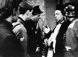 展示细节是真实电影美学的重要表现手段。影片一开始便通过一系列丰富的细节展现出二战后期人民生活的真实状态。神父即将出门,德国士兵闯入,对神父掏出一支枪,就在观众紧张之时峰回路转,士兵取出弹壳里的介绍信,观众方知其是弃暗投明的勇士。这说明法西斯已经众叛亲离。而在抢面包事件中,神父不得不放弃操守参与其中,警察也回归普通生产者的身份,反映出失业、贫困、饥饿、疾病、死亡正严重威胁普通百姓的生存。