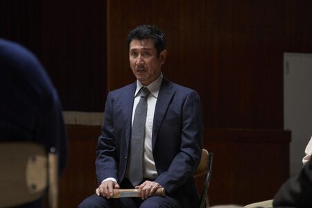 三宅:准备开拍时都是由我来告诉大家在哪里做什么。我不去确定剪辑的时间点或起始位置的话拍摄也没法进行,但像是台词的节奏、眼神之类的都是演员本人决定的。有些人读了原著和剧本,有些人是自己设计的表演。话说回来,除了两位主角,让其他员工看起来非常忙碌是我们早期阶段设想好的。不过,像是在拳击馆有明确的练习场景,但职场中的动作路线只有到了拍摄时才知道忙什么。所以你可以想象在拍摄现场你必须与资深的演员们打交道,而他们不得不面对剧本上没有具体成型的演出。从这一点倒推的话,需要导演及演出部在演员加入前就对他们产生信任,而为了支撑剧本中没有的动作设计,我们需要编写和分享角色的背景,而其实这也是条件之一,这样在选角阶段就可以达成了共识。如果完全没有准备,只是在当天对演员们下命令说“去那边去这边”,那是最失礼的,拍摄现场也会变得超无趣。角色的幕后设定是必须的。不过我觉得自己并没有准备丰富的前情资料,多亏演员们自己充分抓住了角色状态,现场才可以这么顺利。 拍摄现场的规划只能按顺序进行。刚才您指出的那场戏有六个演员,但无法同时跟六位演员排戏,所以首先做的就是巩固两位主要演员和足立先生的戏份。在当时足立一直在“运球”,所以我就想先决定“前锋”的路线,然后再决定“后场”的移动。当我们做拍摄的尝试时,角色几乎都是吻合的,虽然会有细微的差异,有在等待或是匆忙,但这也是幕后的设定在发生的作用,大家也都主动找我商量“这样做怎么样?”,之后再试一次就差不多接近正式拍摄的状态了。整理好之后,根据自己的目标集中在主要部分再看一遍试拍的部分,没有特别需要改正的地方的话,就可以进入正式拍摄了。