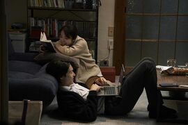 三宅:是的。我也试过让她(藤泽)把薯片拿到厨房去吃,但山添告诉我这样的话他会想用眼睛去确认,去到厨房吃的行为可能反而会变成吸引异性注意的机会。但是在自己附近的话,就不会特意去观察了。两位演员确保了自己的演出不会让人产生暧昧或恋人未满的关系感觉。