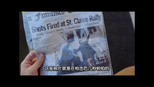 1. 案子疑点,报纸的照片中会长在广场演讲遇到枪击,全场只有会长助理指向天空。报纸上两人动作和拿报纸的手构图几乎一样,除了中英文不一样。