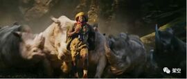 此外,电影里多次出现了或公开或隐晦的成人梗,比如凯文哈特作为诱饵引开成群的白化犀牛,被践踏而死,复活后,向队友们怒骂:“你们知道犀牛下面的xx长什么样吗,知道它有多大吗,那个玩意儿还从我的脸上刮过,我这辈子都忘不了这种时刻!”当下就引得一片哄堂大笑。