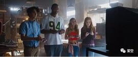 片中有一段情节,需要她去吸引两个把守仓库的打手的注意力,以帮助其他人潜入。率先使用的是美人计,但玛莎此前从未有和男生搭讪的经历,经过恋爱达人贝瑟尼的指导后,不论是抛媚眼,甩头发,咬嘴唇,还是只能非常拙劣地模仿,动作十分僵硬搞笑。在眼看潜入就要被守卫识破之际,玛莎爆发了,以一己之力开始痛殴两个守卫,强森想要上前帮忙都觉得插不上手。要知道,在现实世界,她甚至没有半点运动能力。