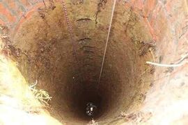从钻井最基础的知识讲述呢,就是,地层越深,地层压力越大,越需要一定密度的泥浆形成静液柱压力来平衡地层压力,井喷就是地层压力大于泥浆的静液柱压力了,然后就喷出来了,最后控制不住就失控了,所以搞钻井的人要对地层压力清楚,然后随着深度增加,不断调节泥浆的比重,来平衡地层压力!比如下图,就是一个裸眼井眼,看到了吧,井壁就是地层,当然这是个水井,直观的看看,容易明白!