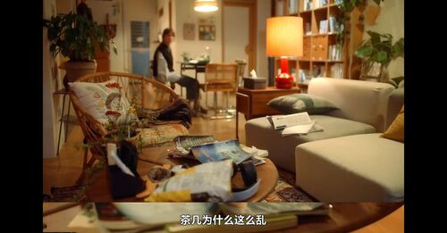 在这个布满植物与原木,绿绿橙橙的,宋青语的家中,林书哲被包裹了起来,好像他也是这温柔温馨的一部分。他开始不断畅想“有小孩”的生活,提到小孩的频次之高到了令人不适的程度。而这个属于宋青语的家中,是只有一间主卧的,从一开始,就不具备兼容小孩的空间。林书哲最后幻想着的四口之家画面,看着更接近一种扩张与入侵行为,属于女主的个人空间氛围在画面中完全消失,只剩下日常生活中无比典型的拥挤局促的客厅餐厅爆改儿童房,这个画面中属于宋青语的人格完全消失,只剩下了吵闹的儿女、索要夸奖的爸爸、笑着的妈妈,多么典型的理所当然的一副画面。
