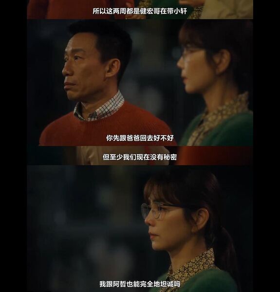注意,本剧直至完结,林书哲都没有坦诚过他长期专线与张佳晨沟通。即使在宋青语提到她去性治疗、林书哲与宋青语开始夫妻咨商后,性治疗这个话题已然在两人间开启并没有隐瞒的理由与必要,林书哲也并没有坦白过其实他一直在打电话去专线。