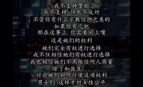 虽然本剧是自然流产,并非人为,更不是堕胎,不过依旧在此转述一个关于堕胎的观点,任何女人都不欠任何人一个小孩,况且刚怀孕只是胚胎,请不要道德绑架任何女性: