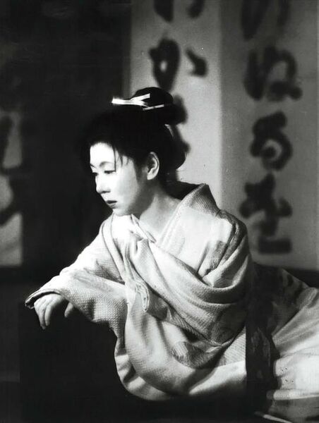 在我看来,沟口健二大量使用一景一镜去聚焦和服下田中绢代的走路,投眉的举动是态度中立的表现。这比起片中制造的许多戏剧化情节(阿春如何被嫌弃)要有力得多,他似乎通过这种行走在固定空间完成情绪的表达,获得一种刚成形态的仪式感。这种仪式感可以理解为场景的构建起始,连接进而成为可称之为惩罚的华丽。正如片中一次摄影家长时间集中在阿春的民族舞蹈,因为女性或者说底层之下,舞之我的体态变化是自我的一次追逐与沉浸,否定再言之破坏的剥削模式。也即是沟口健二电影女性抱有幻想,身份否认荒诞的表现。组成空间与声音所带来的模式危险。即如情节剧的高级推动——通过阿春的体态完成叙事发展的合理性与人物命运“宿命化”(发展的不可能)的框死。而沟口健二只要通过摄影机完成体态的聚焦,剩下来就是田中绢代通过眉宇与身体完成表演的瞬间意识捕捉(片里来看田中绢代捕捉得相当成功,完成了身体欲望的表达。)