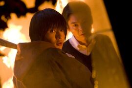 其次要说说导演,本片的导演森淳一虽然之前并没有什么名气,但在其有限的导演作品中,仍然有不少可圈可点之处,特别是在出道作《爱我别走》中,对于智障人士内心世界的把握恰到好处,也让当时红极一时的漥塚洋介拿了许多奖项。而这次他再一次面对一名“复杂”的主人公——一个不仅背负着一般人难以想象的过去,而且还必须接受自己是“恶魔”的儿子这一残酷的事实的高中生。他如何把握好对春的描写对于整部影片来说应该是最为关键的。这一次森淳一再次展现了自己的功力,他巧妙的利用了原著小说中的关键字眼“遗传因子”,让春游走于“遗传”与“非遗传”之间,近乎完美的完成了自己对于整个世界的救赎,同时也让自己“恶魔般”的父亲找到了最好的归宿。另外,在处理春与“哥哥”泉水之间的互动场景时,除了利用部分长镜头拍摄兄弟背影来渲染气氛之外,森淳一还通过大量的回忆以及小时候的照片等小说里的“稀有元素”来进一步加强兄弟之间的情谊。应该说他很好的完成了对春的“进化”,也使全片得到了进一步的升华。