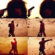 他们路过教堂,路过孩子和牧师,路过马戏团和围观的人们,路过桥梁和火车,路过摔下围墙的笨警察,路过民宅和学校,路过大海和灯塔,路过雨天和朦胧的爱情。他们听到孩子的圣歌,收到牧师的圣书,拣到废弃的芭比,弄到警察的手枪,翻到一只死去的手掌。