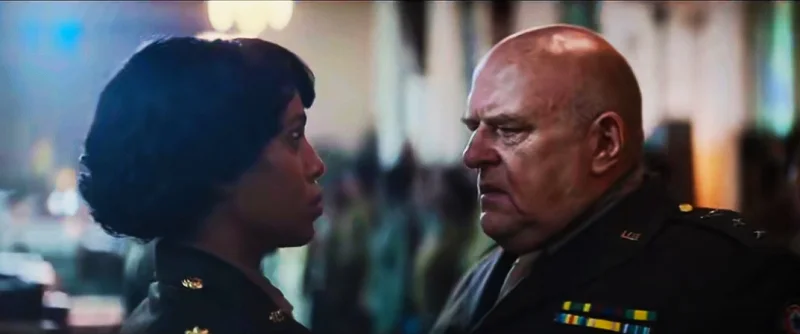 正是由于"简",反而突出了上校指挥官查里蒂·亚当斯(Charity Adams)的大将风范和非凡气场。尤其,是她那慷慨激昂的犀利言辞,简明精炼 、字字直击、句句要害。