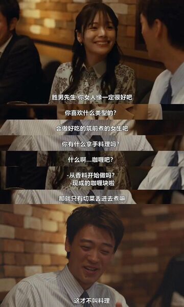 EP1-2真是令人意外的好看。竹内凉真演得很油,但是很好笑。那种笑容如沐春风,油而不自知的自信,充满了喜感。与此同时,他那顽固不化的大男子主义,令人咂舌的言辞,惊掉下巴的迂腐思想,在求婚被女友拒绝后开始摇摇欲坠。曾经很受欢迎的自己,在联谊上说完喜欢女生做饭后就不抢手了;自己煮一顿以为把材料放进去就好了的饭,煮到半夜都吃不上;去超市买食材,比想像中还要花钱。以他的不断吃瘪来表现出思想的强烈碰撞,很有趣。感觉他每集都在认知进步,但是仍然有很多进步的空间。从尝试自己做饭,到与男同事分享便当,再到挑战自己不认可的食物。啊,原来还有我所不知道的世界。啊,原来传统以外的食物也这么美味。着眼点其实很小,男主一定有很多令人难以忍受的毛病,但从始至终总是围绕着食物,无论什么都绕不开食物(所以这确实是一部美食剧吧),反而从以小见大的视角,塑造了立体的人物。看到人会反省的样子,虽然知道是夸张的电视剧,还是会觉得很舒服。当然现实中,不存在的,别想了,顽固成这样的人,改不了的…就算长竹内凉真这样也建议跑。