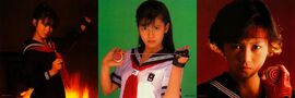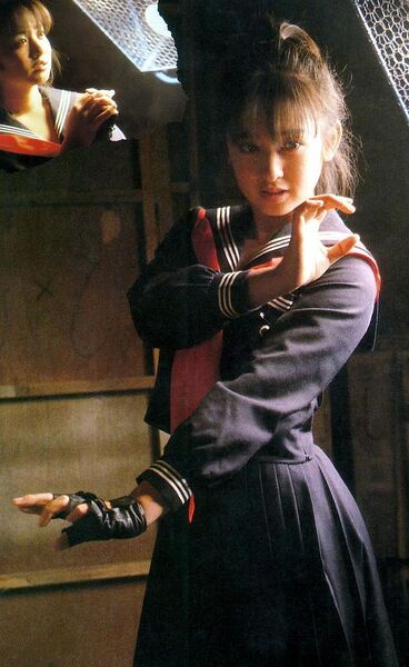 1985年4月,逐渐从良的东映采用了和田慎二在1975-1982年间连载的同名漫画作品《スケバン刑事》作为新的黄金档剧开始播放,主演是同年以一曲《卒業》(不是尾崎豊的那首,但这两人有过一腿)出道的斉藤由貴,听过《相聚一刻》第一版OP的对她的歌声应该很熟悉。主角名为麻宮サキ,译为麻宮纱纪,而在笔者收藏的台版漫画中则译为施莎莉,而漫画名则译为《神秘女刑警》。原作中并不存在换代,自始至终都是纱纪作为飞女刑事。电视剧版顺应了特摄剧的习惯而强行换代,但仍然使用麻宮纱纪作为行动代号,二代的五代陽子很少用到本名,但三代的風間唯就一直以yui自居而只在喊决断词时用到纱纪。清纯文静的斉藤由貴事实上和漫画原作中的纱纪气质相差甚远,原作版是一个发型长相类似修圣衣的穆先生的女汉子,且对男性没多大兴趣(漫画中有一个叫三平的富二代追她追到剃了头做吴克,但始终被骂回去,在电视剧版里被改了设定)。而原作版在1991年时也拍摄了OVA版发行,更还原漫画中的设定和情节。