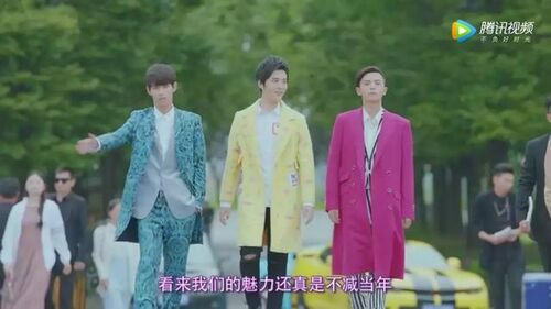紧接着,剧中“圣德四少”男配们的出场,雷人的服装造型宛如烟花般绚丽多彩,被网友亲切称呼为“红绿灯”组合。一样的“四少”、一样的“贴字条”、一样的“少爷爱上倔强女孩”,只是这次模仿的却是《一起来看流星雨》。