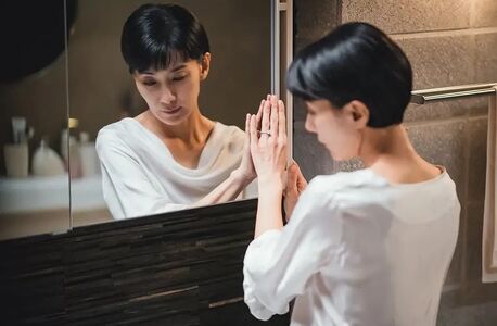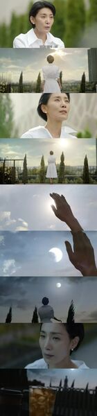 剧中代替“万能感”的描述,设计了点咖啡的情节,但“两种都要”还不足以代替“万能感”,好在金瑞亨的表情演技完美地消化了抽象的“万能感”。她用手遮住了太阳,像魔术一般,手轻轻一挥,太阳变成了月亮的形状,这是一个非现实的表达。太阳是最能代表“万能感”的意象,光、生命、美好,而与太阳相对的月亮,在这里的出现,我认为代表的是“失控感”。阳光瞬间消失,阴郁黯淡的光线笼罩了她,梨华的表情变得不安了。还有冰块融化的轻微响动。一切的变化都是在瞬时间完成的,以不被察觉的方式,有什么事静悄悄的改变了。