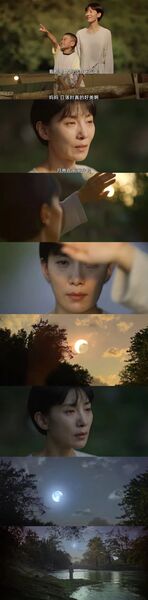 在烟火面前,真的月亮失去了光。就连假的月亮,也苍白失色,不具任何吸引力,不再闪亮,只是不和谐的、碍眼的存在。就像他们的关系。画的纸月亮,曾经是他的初心,但是过后再看的话,可能也不过是他人生的一张分镜图。说完了烟火(火意象),再回到结局的水意象。和火的特质相反,如果说火使某种东西消失、毁灭;那么水则是情感流动、冲刷洗净、滋养生命、赋予新生的象征。在最后一幕中,梨华又一次将太阳变成了月亮。上一次是由爱情而获得的短暂地万能感,转瞬即逝、迈向失控的转折点。这一次不同了,太阳下山、月亮渐渐升起的时刻,梨华重新获得了万能感。这种万能感不再是通过他人、外界而得到的,是梨华找到了真实的自我,获得了自我意义上的救赎。
