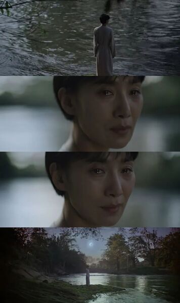 最后的镜头飞越过梨华,一刻不停向前的湍急流水、冲刷着岸边石头的流水,不受任何阻碍总是不断地、向前流······梨华也可以这样,在月亮的光辉下面对真实的自我,就这样,继续,向前走。而靠近的脚步声,单就剧情上,可以是任何人,却也不可能是任何人。你希望那个人是谁?小奶狗?佳乙和善英?但更可能的是,没人能找到梨华,因为没人真的了解梨华。当梨华转过头来眼中噙满泪水,嘴角微微向上似乎是释怀一般地微笑,直视镜头,定格。