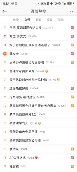 以热搜“魏女士”词条为例,后缀带有明显“娱”字样标识,点进后会自动跳转到文娱榜单高亮显示。