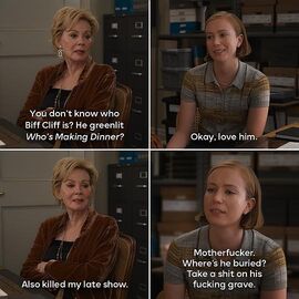 Deb拿到深夜秀主持,已然是真正的上位者,赌场常驻,特辑爆火都不能与之相提并论。这种真正意义的上位者心态与第二季末的劫后余生心态有了天差地别,加上Deb去见了之前深夜秀节目的决策者,这次见面,让Deb坐实了要不计代价保护自己位置的想法。这条路她走得太艰难,太害怕有任何理由导致她的失去,且如果再失去她不会再有时间争取第三次,所以她做了一个上位者的决定,撤回给Ava首席编剧的邀约,而选择留用节目之前的首席编剧,是的,是个老白男。撤回的过程不再赘述,Ava由单纯失望到发现被骗,再到对峙时的痛心,她的哭诉很真实也很鲁莽,但是Ava动人的地方就在于不加修饰的鲁莽——她不害怕掏出真心。