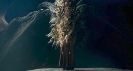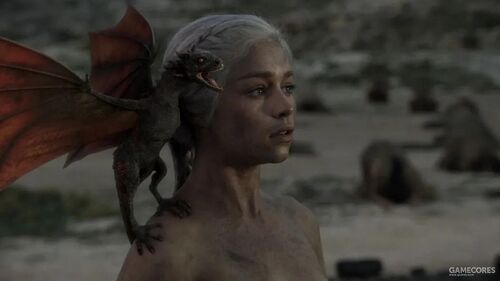 狹海对岸,丹妮痛心地哀悼着死去的丈夫和未出生的儿子。她毅然走进火化亡夫的柴堆里,在大火燃烧殆尽之后,奇迹般地带着三条刚出生的小龙毫发无伤地走了出来,成为「龙母」。