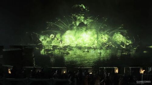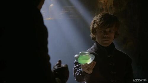 而君临这边,小恶魔通过情报了解到瑟曦正委托炼金术士公会批量制造「野火」。这一致命武器会在之后的剧情中多次出现,比如小恶魔在「黑水大战」中利用它来保卫君临,瑟曦也将在几季之后使用它来报复「教团武装」,龙母会在进攻君临的时候点燃剩下的部分。