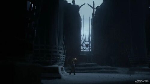 龙母的幻象:大雪纷飞中被毁坏的君临王座厅