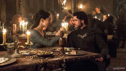 罗柏·史塔克单方面撕毁了原本承诺的婚约,与泰丽莎结为夫妇,并且有了爱的结晶。尽管已经猜到了他们将会以怎样悲惨的结局收尾(详见下方《卡斯特梅的雨季》),我们还是能理解为何罗柏愿意为了泰丽莎,不惜断送他与弗雷一家来之不易的联盟。因为他们两个是真心相爱的。