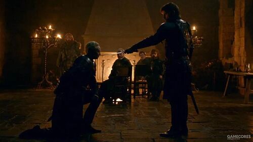 指挥官琼恩·雪诺因偏袒野人而被他的兄弟们骂为「叛徒」。作为对他的惩罚,守夜人们集体叛变,把他刺死后扬长而去,独留琼恩孤零零地死在雪地里。