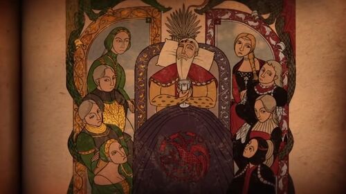 伊耿·坦格利安对维斯特洛的征服是与姐姐维桑尼亚·坦格利安和妹妹雷妮丝·坦格利安共同完成的,维桑尼亚和雷妮丝都是伊耿的妻子。三人都驾驭各自的巨龙在征服战争时期立下赫赫战功,维桑尼亚与雷妮丝获得权力的合法性来源是她们的龙及其自身对征服战争的贡献,而不是作为伊耿的姐妹和妻子。反而是这种血缘与婚姻叠加的模式,在王权初期很大程度上避免了男女在权力分配方面的冲突,三人以共治的方式管理维斯特洛,巩固了坦格利安家族的权力。这一稳固又怪异的三角关系中,微妙却又不可或缺的是姐妹两人对于伊耿的“爱”。姐妹两人始终不曾在权力分配的问题上与伊耿产生矛盾,始终是作为国王的左臂右膀。妹妹雷妮丝在征服多恩的战争中和她的龙一起陨落,为家族事业付出了生命;姐姐维桑尼亚尽管性格阴鸷多疑,却始终信任且保护弟弟,正是她设立了保护国王的御林铁卫制度。