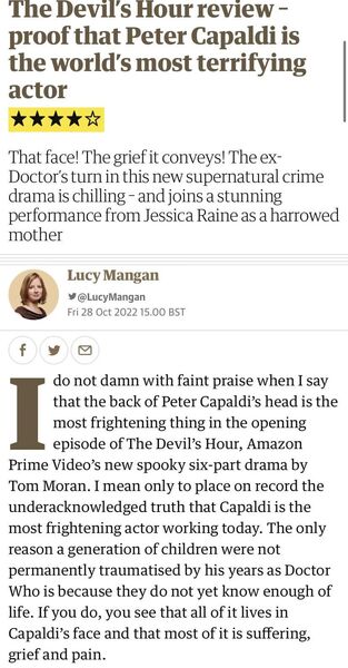 总体来讲各个方面都比预期高,扣一星给点子又有点复用,另附卫报笑到肚疼的一篇剧评