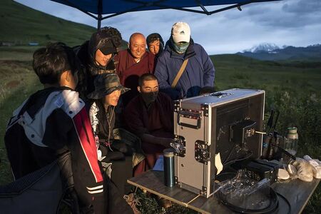 和一些大导演只是定景的时候去确认一下不同,电影里每一处场景导演都亲力亲为,当年藏地旅行的两个月提供很大帮助。“一开始我们按照剧组的惯例找景,但找到的感觉都不对,我索性重走当年旅行的路线,我旅行有个习惯,就是一路走一路拍照一路标记我认为值得记住的场景、建筑、地势,这让电影选景少走很多弯路。”拍摄过程中,陈颖心收获不少小惊喜,比如记忆中的很多地方的景观都得以保留,没有被破坏,又比如拍成人礼山村的水库是计划之外的美景。但也有很多困扰,比如塔尔寺的游客实在太多了,等一个小时只能拍5分钟,最后甚至把执行导演用来求婚的素材都放到了电影里。