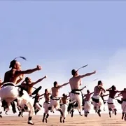 夕阳残照,海风急,浪潮起,绣有保家卫国四个大字的黑白旗帜迎风飘扬,黄飞鸿带着民团排出阵列练拳习武,此时《男儿当自强》的旋律开始。这是全片最激动人心,并使人奋发向上的场景,虽然民团的人一个个的肋骨都露出来了,可是仍旧贫贱未移,强身健骨,保家卫国。如若每个中国人都能这样自强不息,谁又能断定眼前的太阳不是即将升起的朝阳呢?正如歌词中唱到的:“傲气傲笑万重浪,热血热胜红日光······”不必苛求每个人都能活出黄飞鸿那样的现实,但至少要活出那种状态。