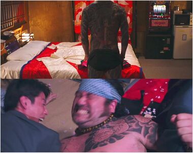 这是[孤狼之血]里的两个有关刺青的镜头。