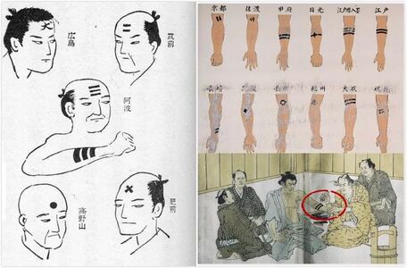 于是7世纪,刺青在日本专门用于标记罪过之人,带着羞辱意味。继而,也与歹人关联起来。