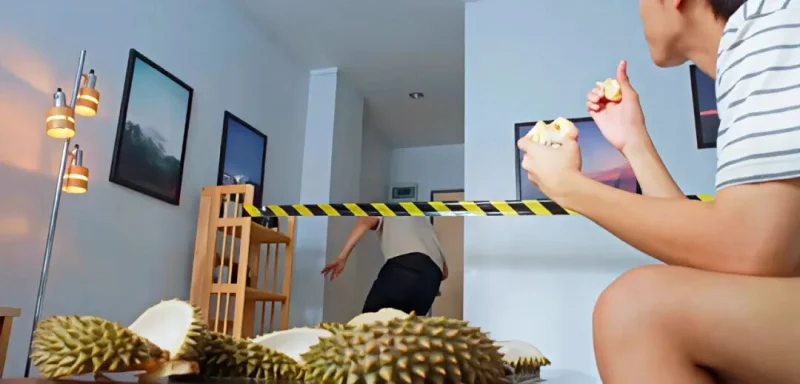 Ice开始想法让对方搬走,买了一大堆榴莲在那啃啃啃,