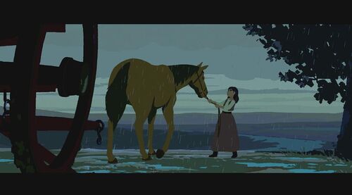 途中他父亲遭受意外受伤,在这期间,她努力自学骑马、套绳、驾马车等技能。随着日子一天天地前进,她的能力也越来越强。