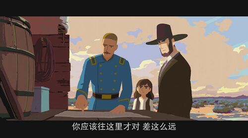 黄天不负有心人,在士兵营里女主终于找到了那个人,并得知他不是盗贼,一切都是因族长儿子而起。女主拿了属于自己族人的东西,将那可爱的小黄归还士兵,也告别了那个青年跟金矿夫人,独自踏上寻找家人的旅程。临别时,女主突然吻了一下那青年,这让我有些意外。感觉这一吻不是纯粹的爱情,里面还有其他感情元素。毕竟,在一起这么多个日日夜夜,经历了那么多冒险,此次离别或许真后会无期,多多少少有些不舍之情。